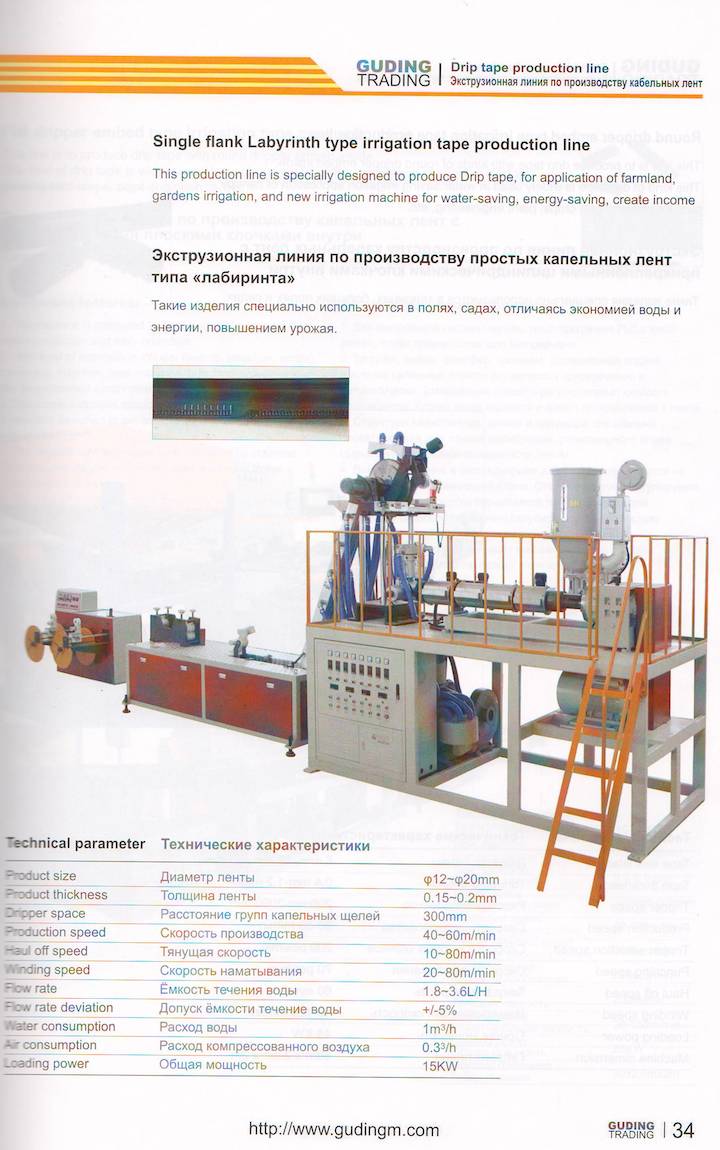 This prodction line is specially designed to produce Drip tape ,for application of farmland, gardens irrigation, and new irrigation machine for water-saving,energy-saving, create income