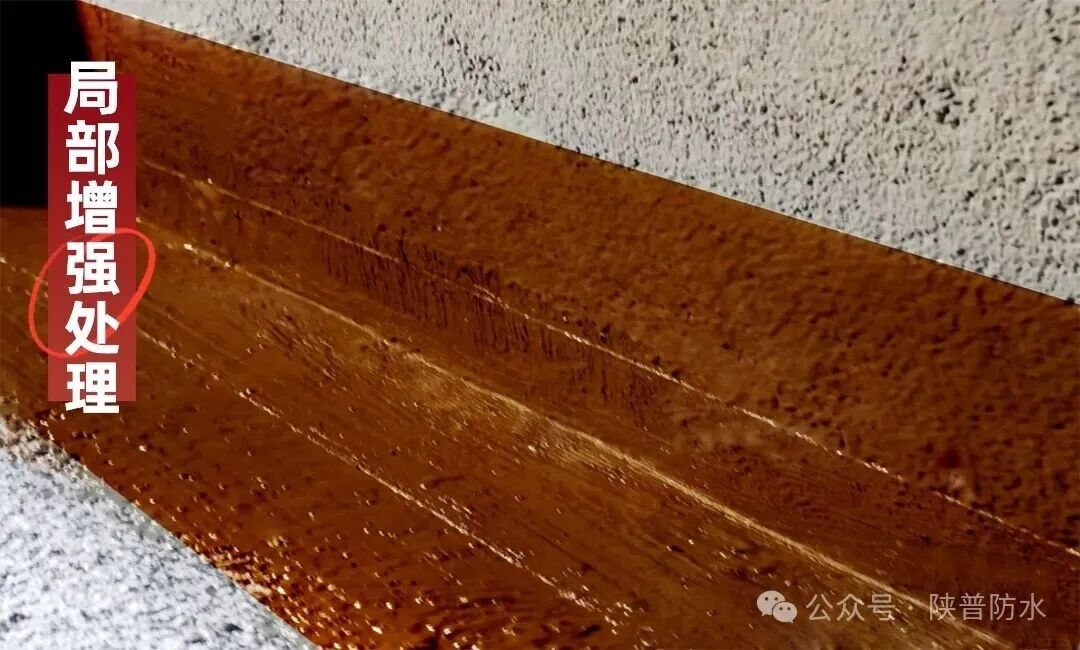 ②局部增強(qiáng):陰陽角、管道根部、伸縮縫等用加筋網(wǎng)格布進(jìn)行增強(qiáng)處理,固化后再整體施工。