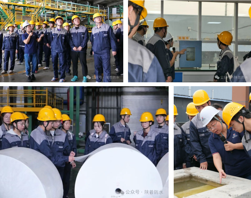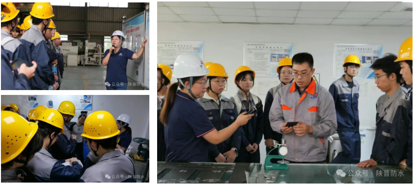 陜普防水以“全流程安全標準化管理”為核心,涵蓋安全規(guī)范宣講、生產(chǎn)車間觀摩、原材料溯源體系解讀及實驗室檢測互動的全過程學(xué)習(xí)環(huán)節(jié)。